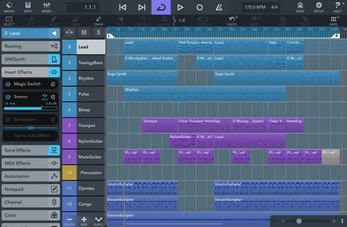 | HALion Sonic Collection | Bass guitar, acoustic guitar, muted guitar (the bass guitar played high with MagicSwitch chorus effect), drums/perc, trumpet. | Built-in (IAP) |